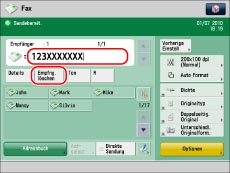Wählen Sie den Empfänger → Bestätigen Sie durch Berühren der Taste [Details].