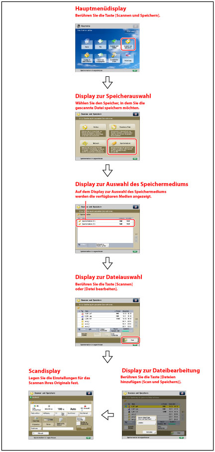 Ihr Original wird gescannt und auf dem Speichermedium gespeichert. |