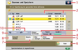 Nähere Informationen zur Einrichtung von Ordnern, Überprüfung von Detailinformationen zur Datei und Bearbeitung/Löschung von Dateien finden Sie im Abschnitt "Zugang zu gespeicherten Dateien".