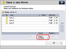 Wählen Sie den gewünschten Ordner → Berühren Sie die Taste [Details] → Bestätigen Sie durch Berühren der Taste [OK].
