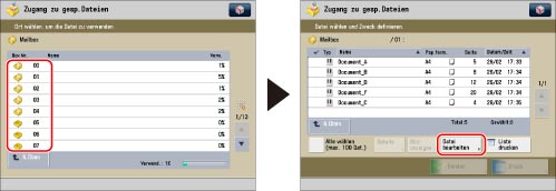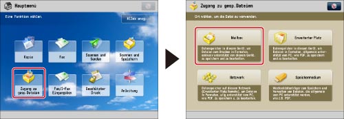 Berühren Sie nacheinander die Tasten [Zugang zu gesp.Dateien] → [Mailbox].