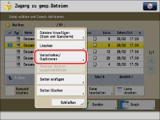 Um eine Datei zu duplizieren, berühren Sie die Taste [Duplizieren].