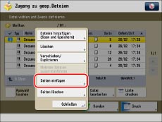 Wenn Sie mehrere Dateien wählen und die Taste [Seiten einfügen] berühren, wird die ausgewählte (markierte) Datei zu der Datei, die eingefügt wird.
