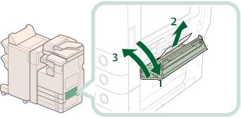1.Öffnen Sie die obere rechte Abdeckung der Papierkassette, indem Sie sie an ihrem Handgriff festhalten. |