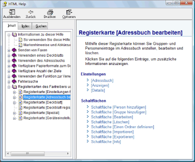Klicken Sie auf [Inhalt] / [Index] / [Suchen], um gezielt nach bestimmten Hilfethemen zu suchen.