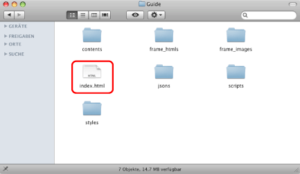 Doppelklicken Sie im Installationsordner nacheinander auf [Documents] → [Guide] → "index.html".