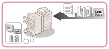 Impresión de datos leídos de un original, seguida de opciones de acabado, como grapar.