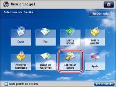 Para información acerca de los productos opcionales necesarios para utilizar la función Impresión segura cifrada, consulte "Productos opcionales necesarios para cada función".