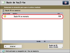 Si se desactiva <Bloqueo de memoria de fax> y/o <Bloqueo de memoria I-fax>, los archivos recibidos mediante la función de fax/I-fax se imprimen automáticamente y se eliminan del buzón de recepción en memoria.