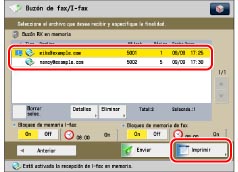 Los archivos guardados en el buzón de recepción en memoria se eliminan automáticamente después de imprimirlos.