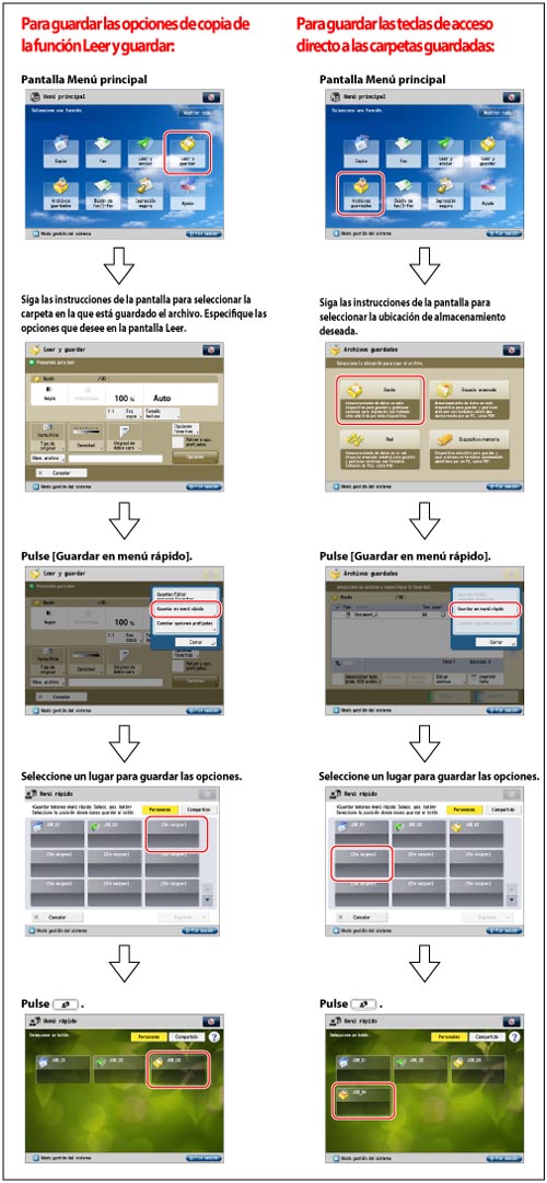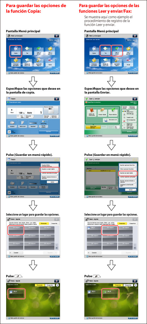 Para instrucciones acerca de cómo guardar un botón personal o un botón compartido, consulte la explicación con la función Leer y enviar como ejemplo en "Guardar los botones personales y los botones compartidos".