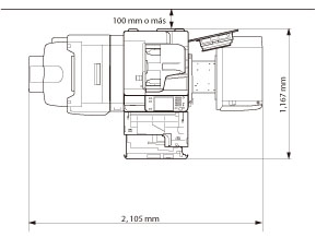 Cuando están instalados la Unidad Lectora Color E1, la Unidad de Acabado Interna D1, la Taladradora Interna 2 Taladros A1 y el Depósito de Papel B2