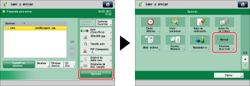 Puede establecer un nivel de prioridad al enviar a direcciones de correo electrónico.