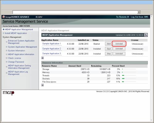 Si para el estado de una licencia de aplicación aparece <Not Installed>, se puede desinstalar la aplicación. Si para el estado de la licencia de aplicación aparece un mensaje distinto de <Not Installed>, se puede desinstalar la aplicación después de haber desactivado y eliminado el archivo de licencia. (Consulte "Gestionar las licencias de las aplicaciones".)