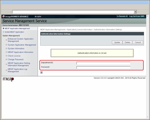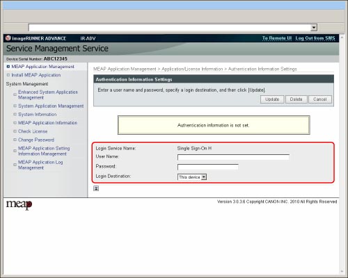 Si la información de autenticación se ha establecido correctamente, aparece el mensaje <Authentication information is set>. Si se produce un error al configurar la información de autenticación, aparecerá un mensaje de error.