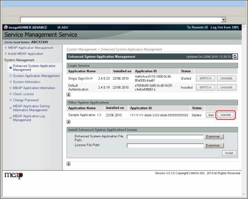 Haga clic en [Uninstall] para la aplicación que desee desinstalar.