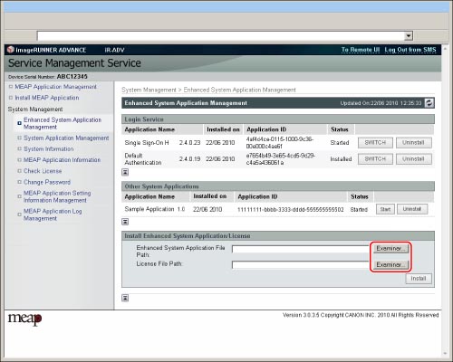 Al instalar una aplicación de sistema, debe especificar tanto el archivo de la aplicación como el archivo de licencia.