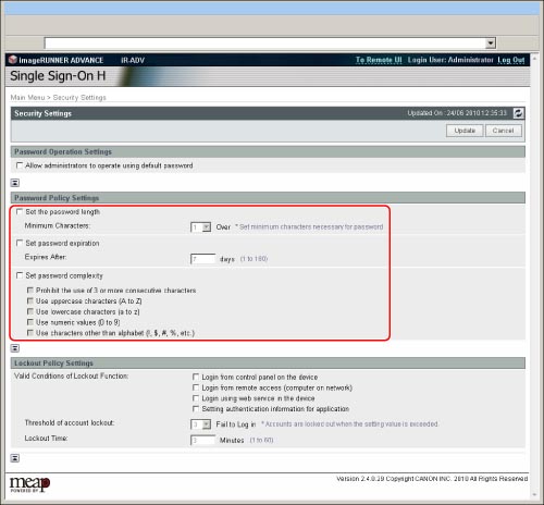 Seleccione [Set the password length] → configure el número mínimo de caracteres.
