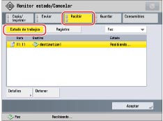Muestra información detallada del trabajo seleccionado. Compruebe la información detallada → pulse [Aceptar] para volver a la pantalla Recibir.