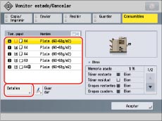 Para conocer las instrucciones acerca de cómo especificar [Opciones de papel], consulte "Guardar el tipo de papel para el origen del papel".