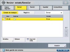 Si establece [Enviar], [Estado de trabajos], [Enviar] como Pantalla prefijada (Monitor estado/Cancelar):