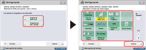 Pulse un botón de acceso directo → seleccione la opción que se guardará en el botón→ pulse [Aceptar].