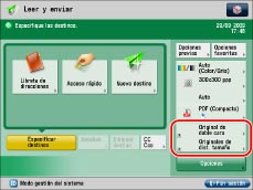 Puede guardar las teclas de acceso directo que se muestran en la pantalla Enviar. Puede guardar un máximo de dos botones desde [Opciones].