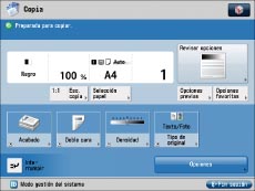 Cambiar la pantalla de funciones básicas de copia