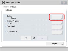 Como ejemplo, en las siguientes páginas aparece la secuencia de pasos para configurar el número de copias predeterminado.