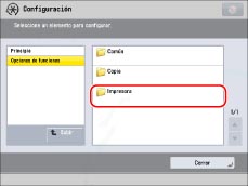 Pulse [Opciones de funciones] → [Impresora] → [Opciones de impresora].