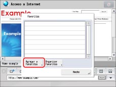 La página web guardada se agrega a la lista que aparece al pulsar [Favoritos].