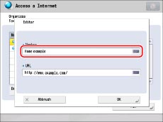 Si pulsa [Aceptar] sin introducir un nombre en el campo del nombre, se utilizará la dirección URL como nombre.