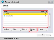 Si desea borrar todas las páginas web registradas en Favoritos: