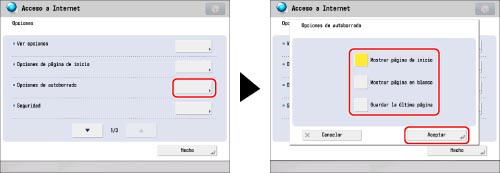 Muestra la página inicial que aparece cuando se inicia Acceso a Internet.
