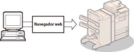 Puede controlar desde el navegador web de su ordenador funciones tales como confirmar el estado del equipo, las operaciones con trabajos y las instrucciones de impresión de los datos leídos guardados.