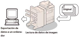 La función de lectura en red permite utilizar la imageRUNNER ADVANCE 4051i/4045i/4035i/4025i como un escáner convencional. Puede leer un documento con el equipo y ver los datos en la aplicación que esté utilizando en su ordenador. Puede leer imágenes hasta un tamaño de A3 con una resolución de 600 x 600 ppp.