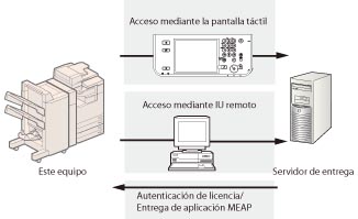 Para conocer las instrucciones acerca de cómo instalar y desinstalar aplicaciones MEAP, consulte "Instalar aplicaciones" y "Desinstalar aplicaciones".
