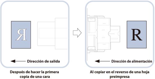 Para más información acerca de la dirección de impresión en papel preimpreso (papel con logotipos o dibujos ya impresos), consulte "Relación entre la orientación del original y la orientación del papel".