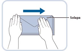 Doble la solapa antes de cargar los sobres en la bandeja multiuso, tal como se muestra en la ilustración.