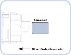 Cuando se carga papel en la bandeja multiuso, la cara que queda hacia abajo es en la que se imprime.
