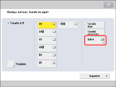 Establezca el tamaño de papel o sobre en el mismo tamaño que el del papel o los sobres cargados en la bandeja multiuso.