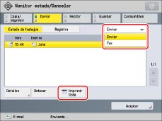 Pulse la lista desplegable → seleccione [Enviar] → pulse [Imprimir lista].
