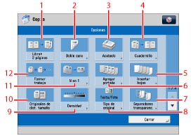 Se pulsa para especificar otras opciones. Puede configurar una serie de funciones de copia.