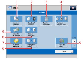Se pulsa para comprobar, editar o borrar las opciones de copia actuales. |