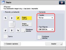 Si establece dos de los modos [Numerar páginas], [Numerar juegos cop.] o [Imprimir fecha] para imprimir en la misma posición, aparece un mensaje de confirmación al pulsar