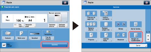 Si utiliza conjuntamente [Margen encuadernación] y [Doble cara], y copia un documento que carece de margen de encuadernación, siga las instrucciones que se indican a continuación:
