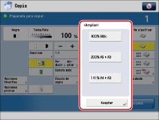En la pantalla de funciones básicas de copia rápida aparecen pantallas emergentes cuando se pulsan ciertas teclas. Pulse [Aceptar] para cerrar las pantallas emergentes.