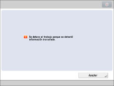 Se restringe la copia de las hojas impresas. No es posible copiar las hojas impresas cuando se detecta Prohibir todo.
