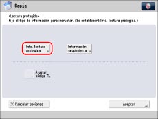 El modo Lectura protegida no garantiza la restricción de las copias no autorizadas. Es posible que, según la combinación de opciones y las salidas, no pueda restringir las copias no autorizadas ni analizar la información de seguimiento, como los documentos con una imagen que ocupa toda la página.
