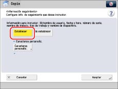 Para establecer texto personalizado, pulse [Caracteres personaliz.] → introduzca el texto → pulse [Aceptar].